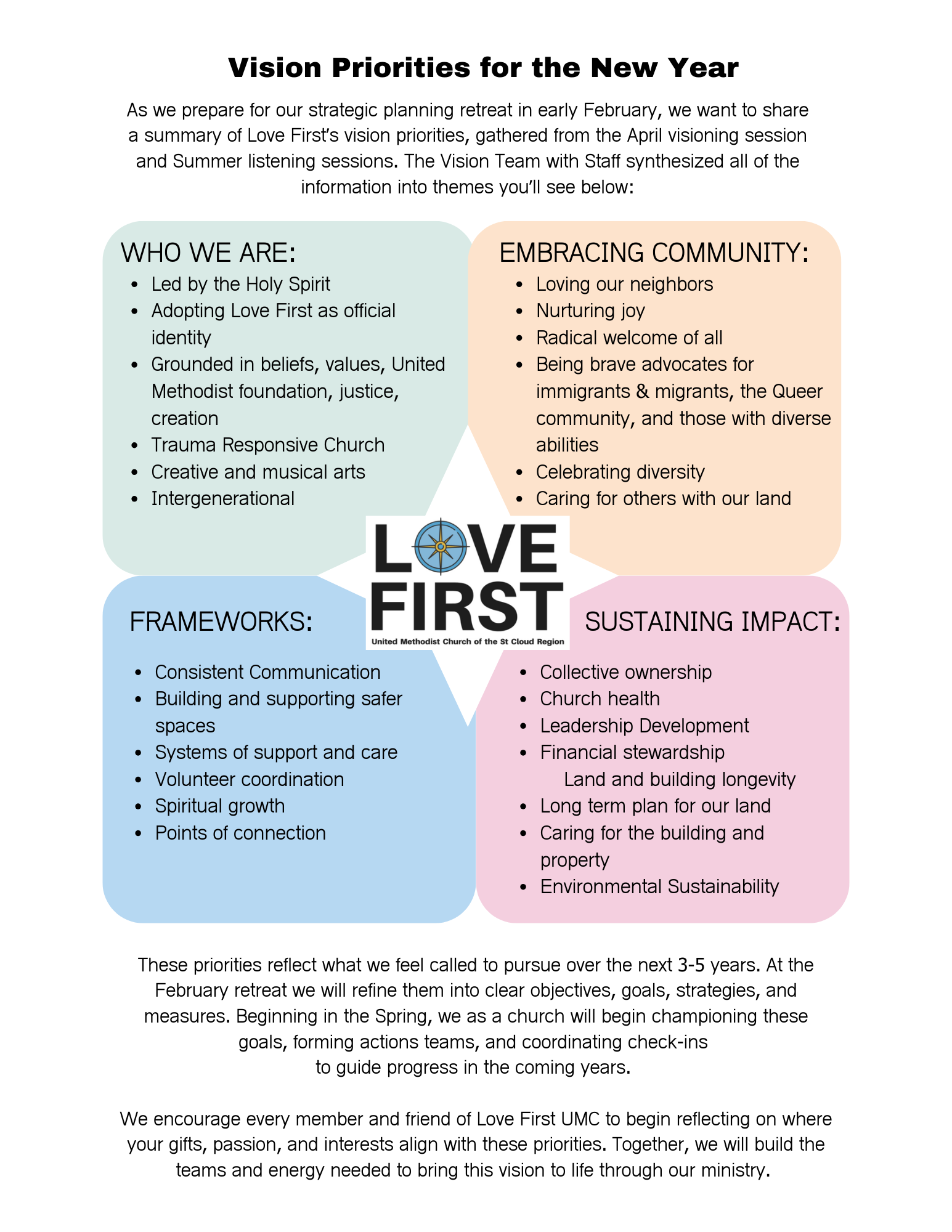 “What are the key priorities & ideas that will shape the future of Love First UMC?”